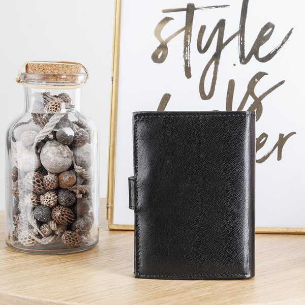 Czarny portfel męski zapinany guzikiem - Akcesoria