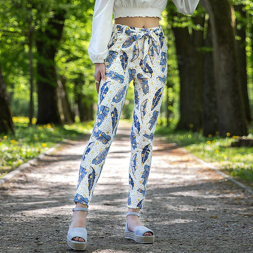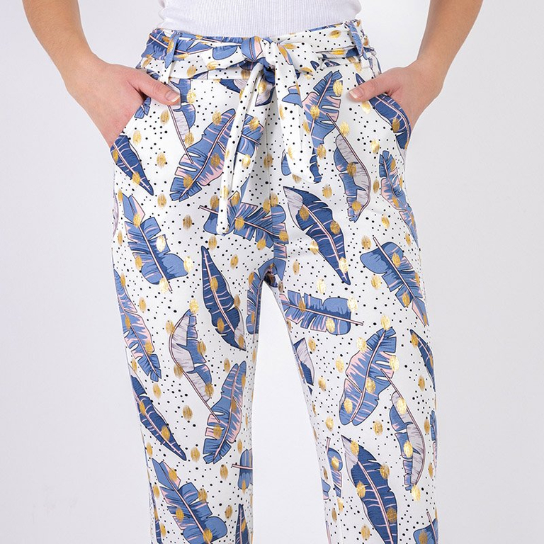 Royalfashion Białe damskie tregginsy w piórka