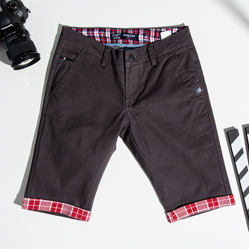 Royalfashion Ciemnoszare męskie spodenki z bordowymi wstawkami