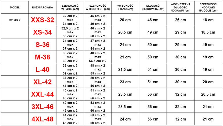 Tabela rozmiarów - przed zakupem sprawdź rozmiarówkę!