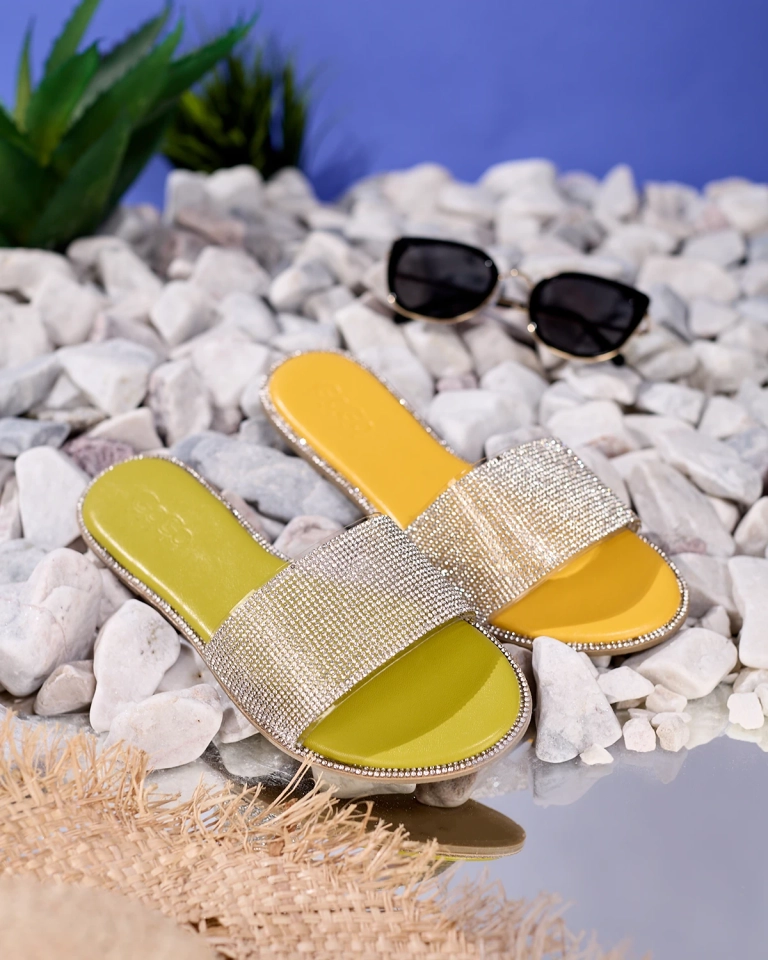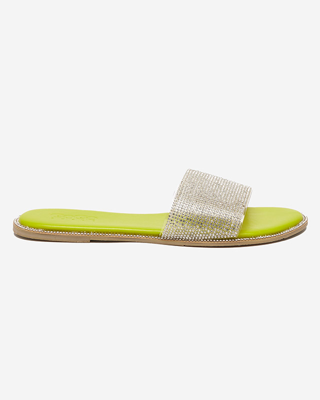 Royalfashion Zielone damskie klapki z cyrkoniami Verina