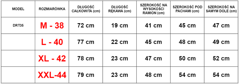 Tabela rozmiarów - przed zakupem sprawdź rozmiarówkę!