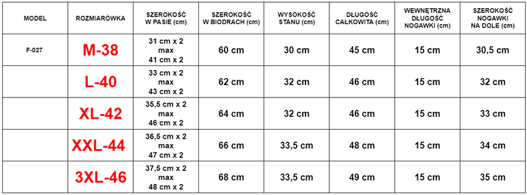 | Velikost M - 38 | |||||||||||||||||||||||||||||