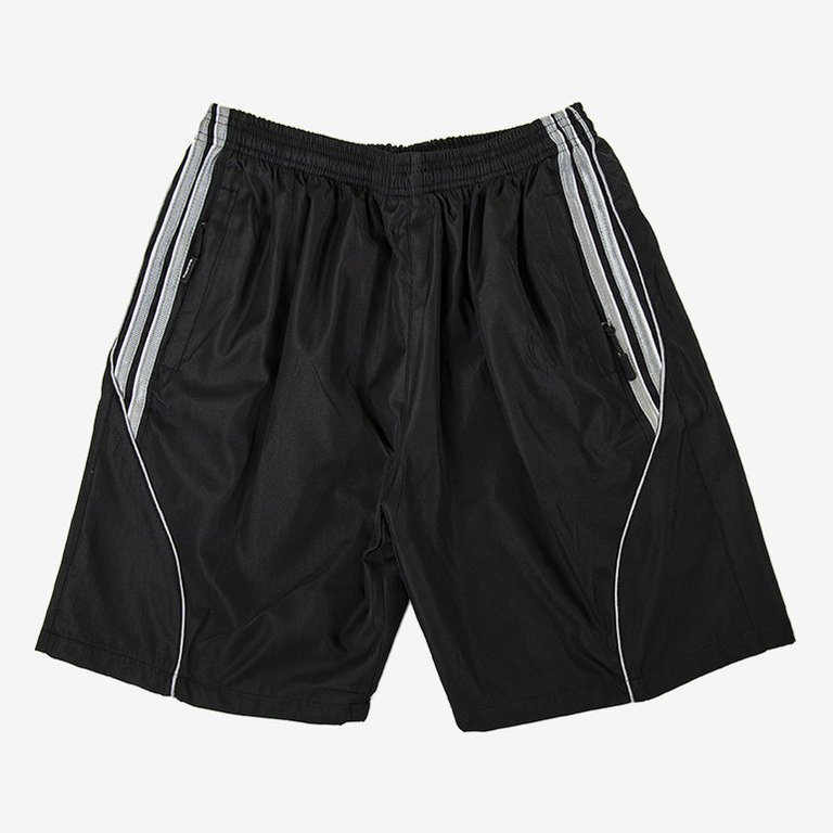 Czarne spodenki męskie z szarymi lampasami - Odzież