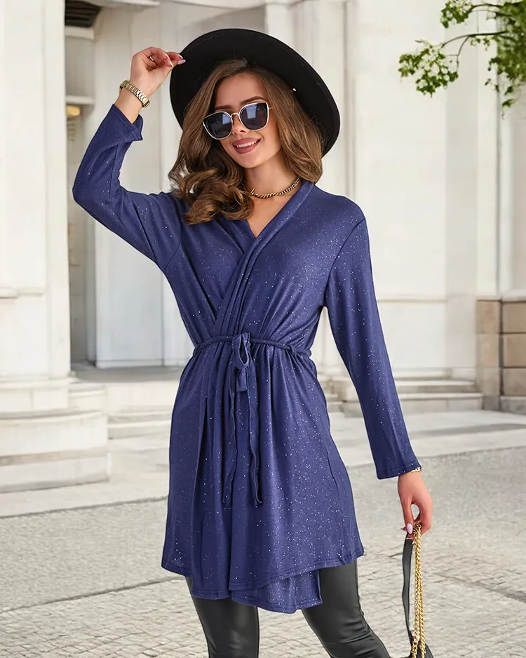 Royalfashion Granatowa damska wiązana narzutka kardigan