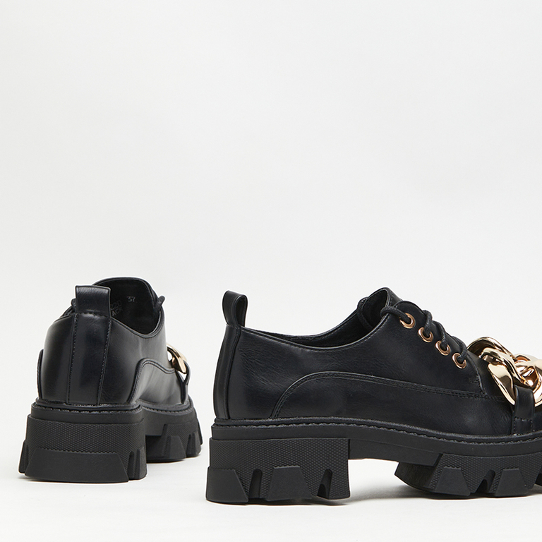 Czarne półbuty na płaskim obcasie Eqoia - Obuwie