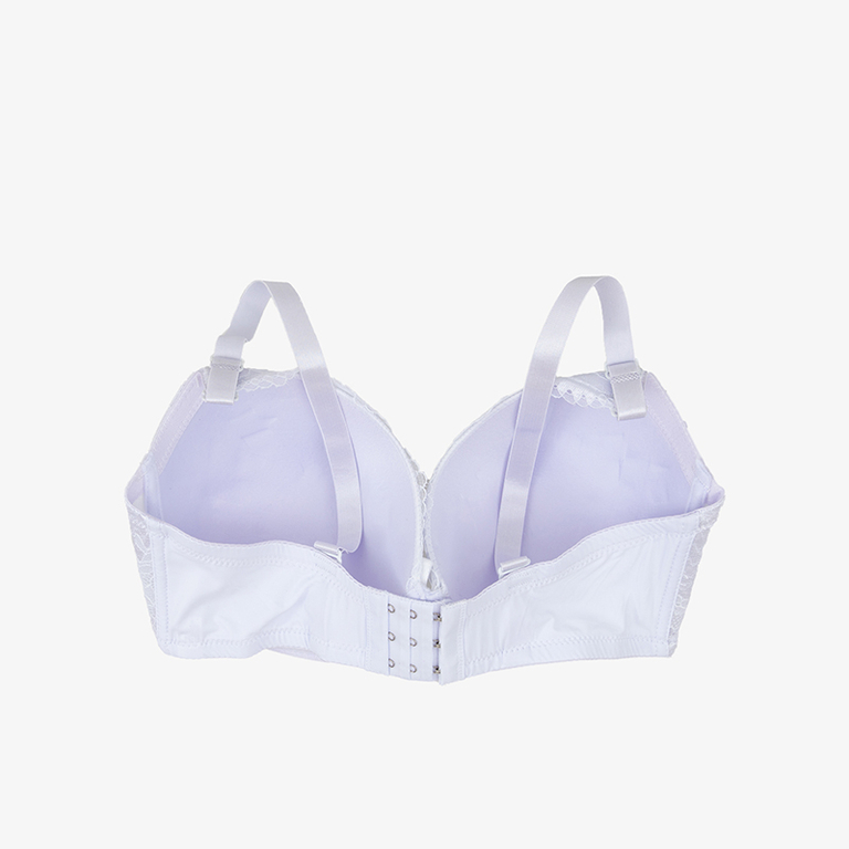 - Damski usztywniany biustonosz z koronkowymi miseczkami. Model zapinany z tyłu, posiada regulowane i odpinane ramiączka. Komfortowa bielizna dla kobiet!