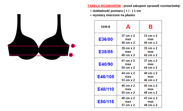Dokładność pomiaru (+/-) 1 cm. Wymiary mierzone na płasko.