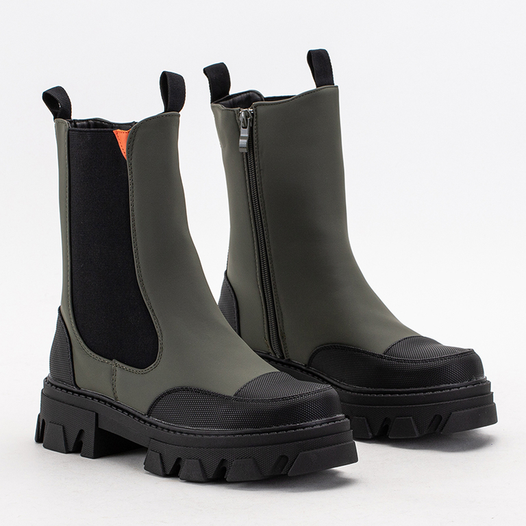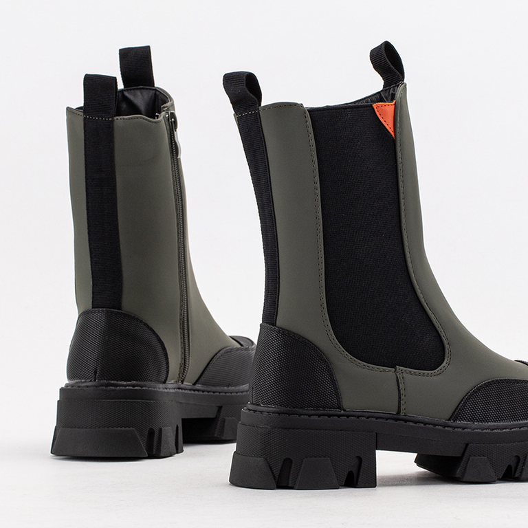 Ciemnozielone damskie botki na masywnej podeszwie Rosidi - Obuwie