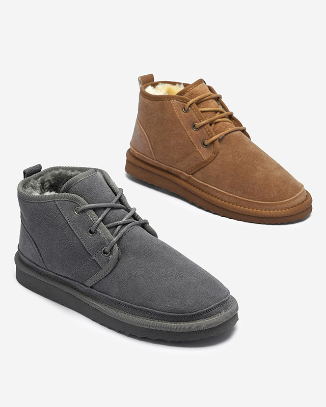 - Niesamowicie ciepłe i miękkie śniegowce damskie, wykonane ze skóry naturalnej zamszowej. Model wiązany, na płaskiej podeszwie w całości ocieplany gęstym futerkiem. Genialny wybór na zimowe dni! SZARE BUTY ZIMOWE ŚNIEGOWCE DAMSKIE MIUSHO