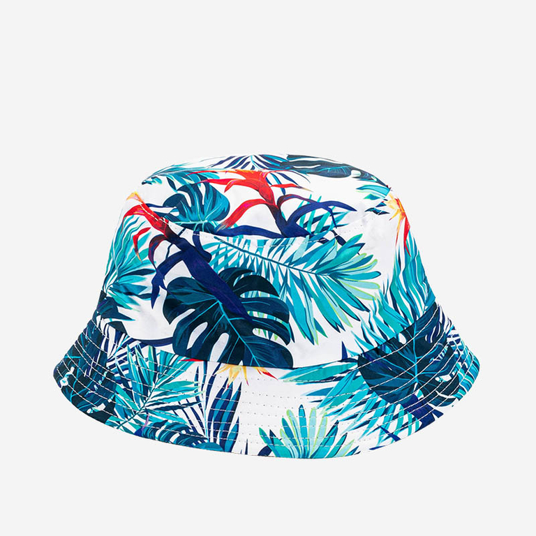 Royalfashion Niebieska damska czapka typu bucket hat z hawajskim motywem
