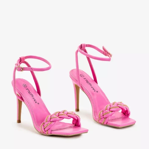 OUTLET Fuksjowe damskie sandały na szpilce Tenedi - Obuwie