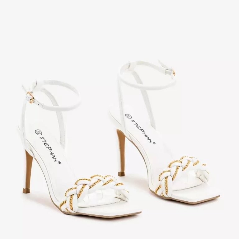 OUTLET Białe damskie sandały na szpilce Tenedi - Obuwie