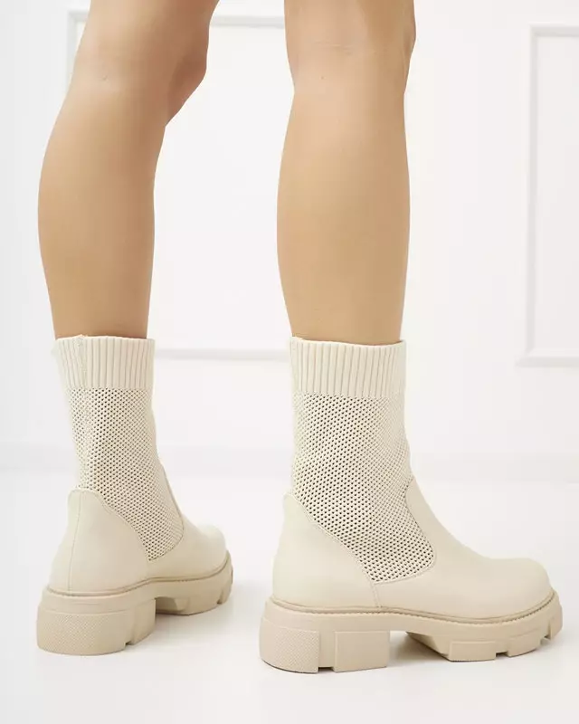 OUTLET Ażurowe beżowe damskie botki na płaskim obcasie Roibu - Obuwie