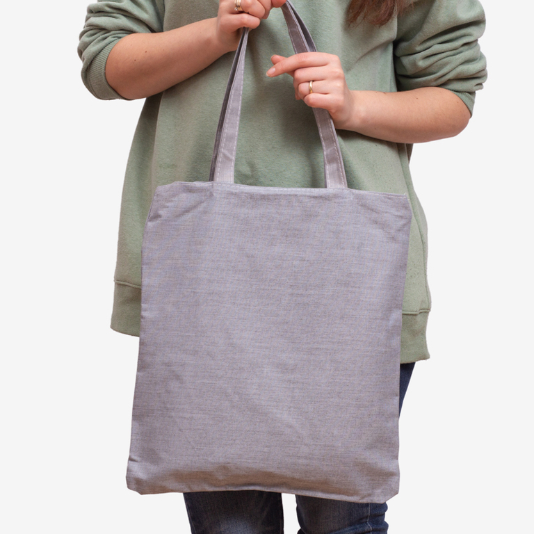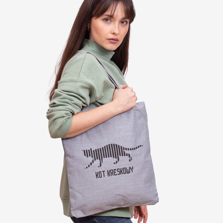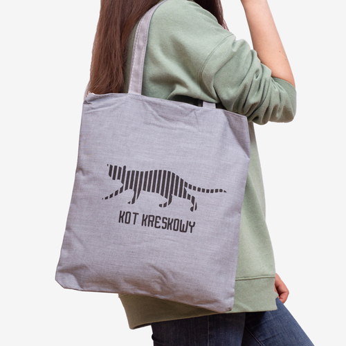Szara materiałowa torba z napisem i nadrukiem kota - Akcesoria
