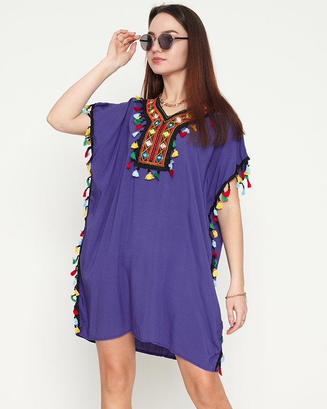 Royalfashion Fioletowa damska letnia tunika plażowa z frędzelkami