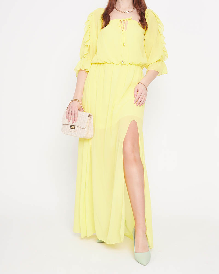 Damska żółta sukienka maxi hiszpanka - Odzież