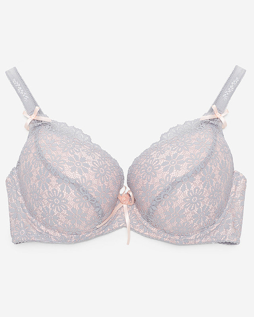 Royalfashion Szaro-różowy koronkowy biustonosz damski