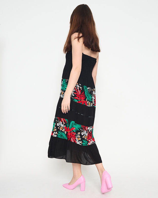 Czarna damska sukienka midi w kwiaty PLUS SIZE - Odzież