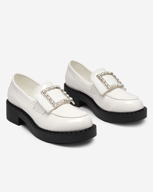 OUTLET Białe półbuty lakierowane z klamrą Fogim- Obuwie