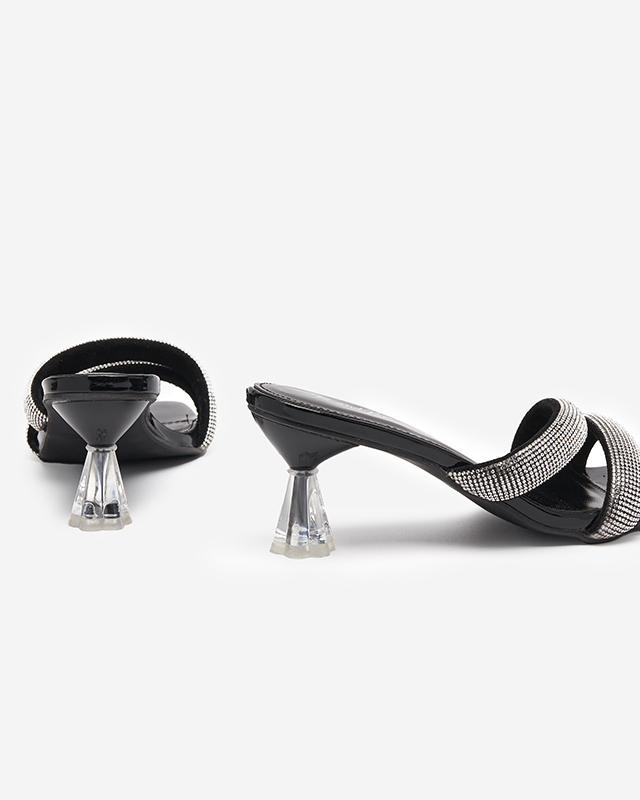 Royalfashion Czarne damskie klapki na niskim obcasie Teroo