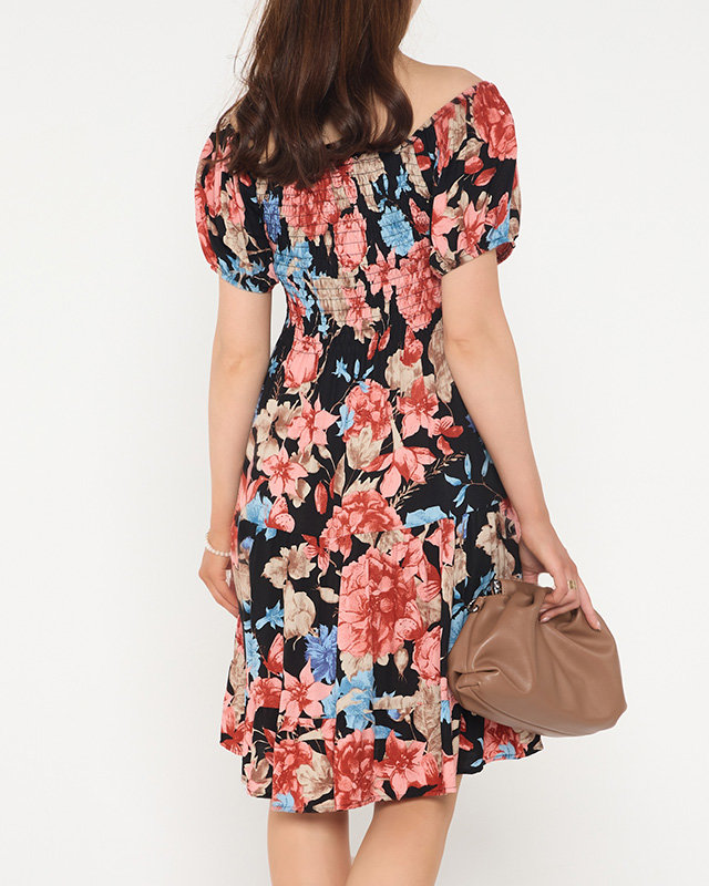 - Fantastyczna damska sukienka mini wykonana z lekkiej tkaniny w kwiaty. Model z odkrytymi plecami a'la hiszpanka, posiada szeroką gumę w biuście i w pasie. Dół sukienki jest zdobiony falbankami. Doskonała na lato! Dokładność pomiaru (+/-) 1 cm.