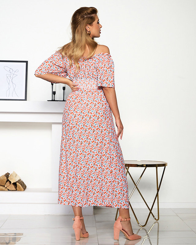 Pomarańczowo- biała sukienka maxi z kwiatowym wzorem- Odzież