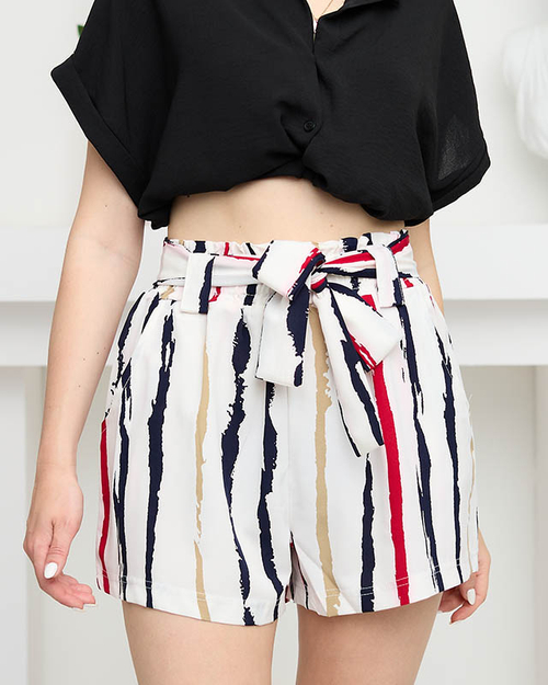 Royalfashion Białe damskie materiałowe krótkie spodenki w paski