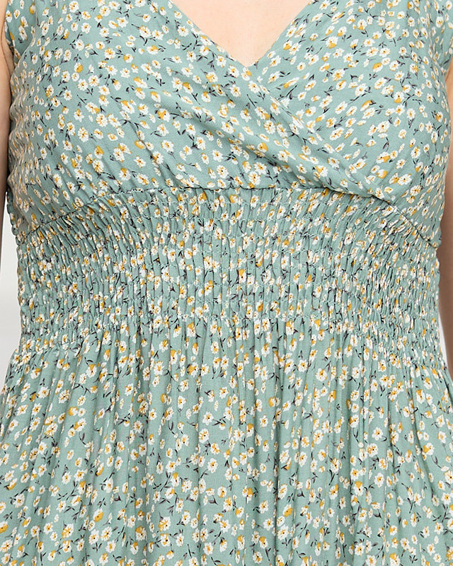 Zielona krótka sukienka w drobny kwiatowy wzór - Odzież