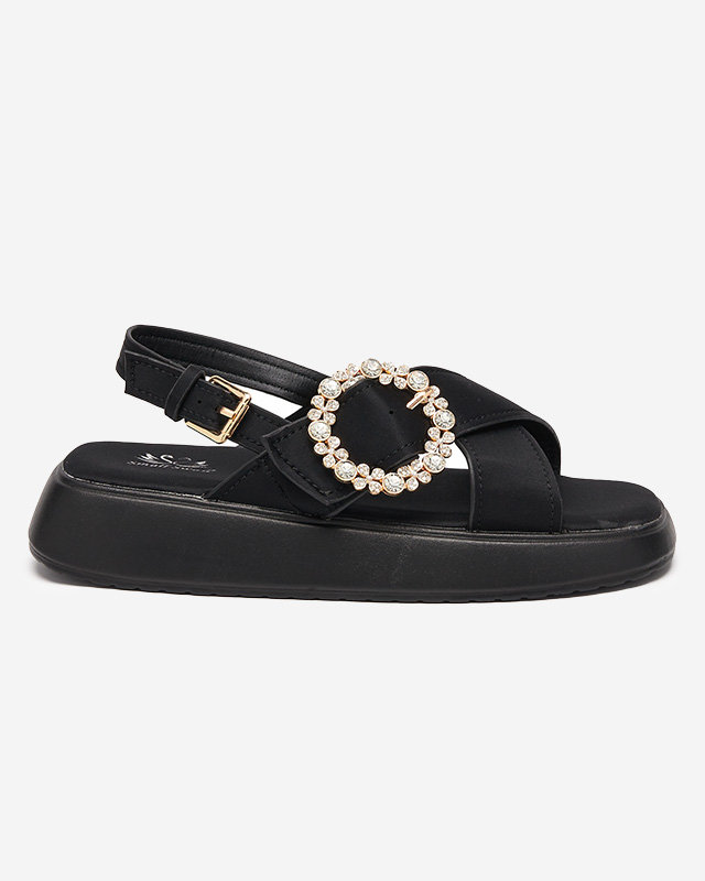 Royalfashion Czarne tkaninowe sandały damskie na płaskiej podeszwie Senire