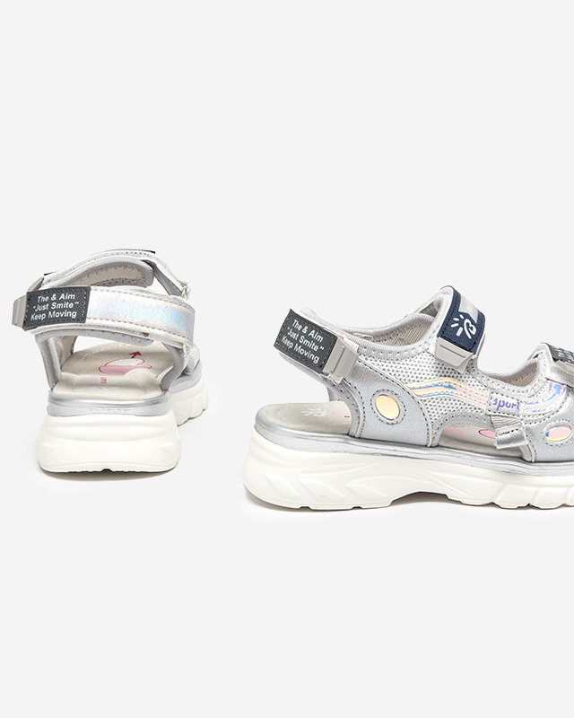 Royalfashion Srebrne sandały dziecięce z kolorowymi wstawkami Meniko