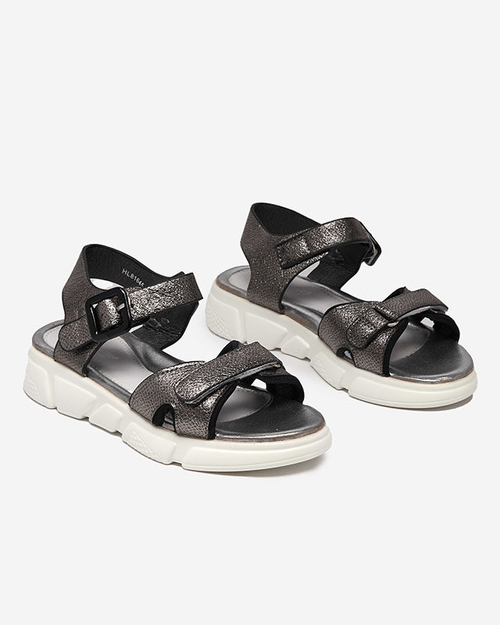 Royalfashion Grafitowe błyszczące sandały dziewczęce Jenilo