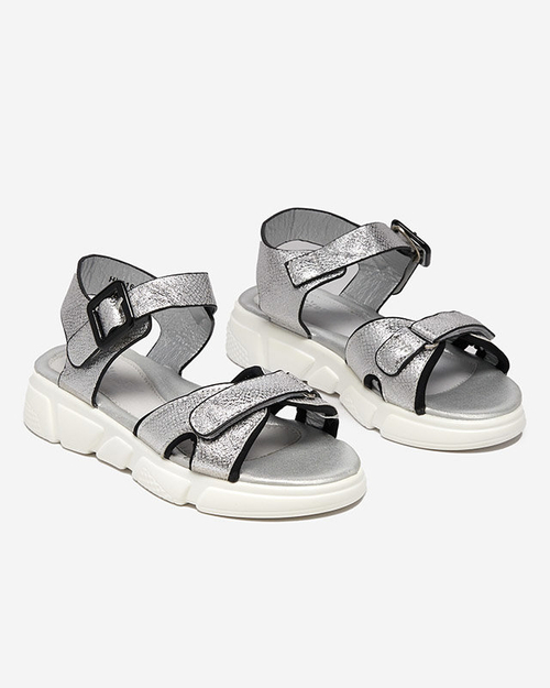 Royalfashion Srebrne błyszczące sandały dziewczęce Jenilo