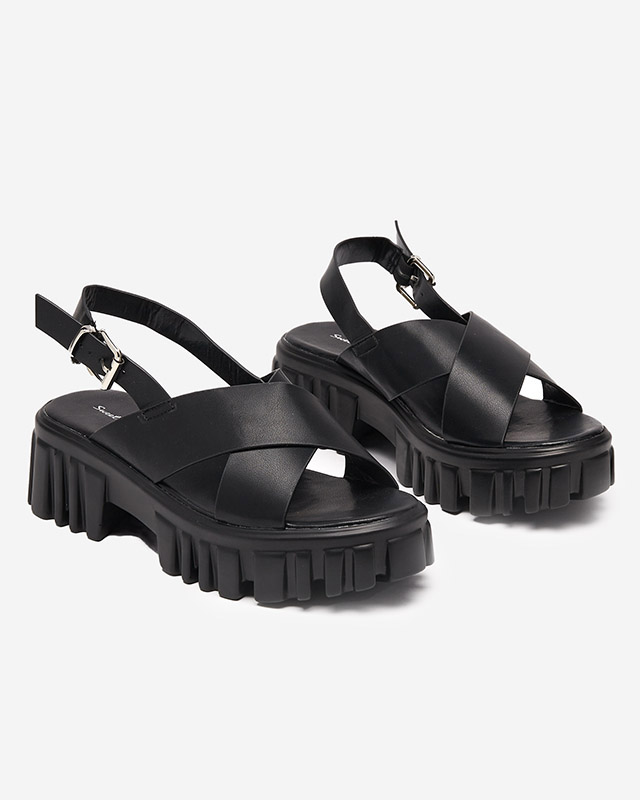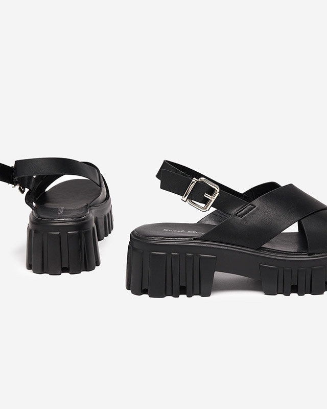OUTLET Czarne damskie sandały na masywnej podeszwie Otida - Obuwie