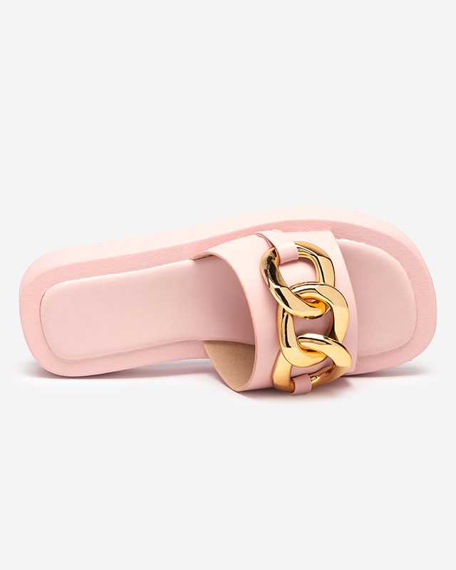 Royalfashion Różowe damskie klapki ze złotym łańcuszkiem Reteris
