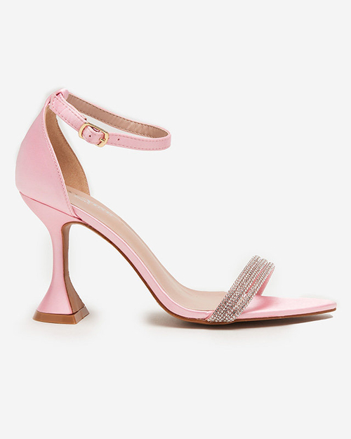 OUTLET Różowe damskie sandałki na szpilce z ozdobnymi cyrkoniami Manestri - Obuwie