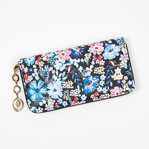 - Kwiecisty damski portfel wykonany ze skóry ekologicznej i zapinany na zamek błyskawiczny.