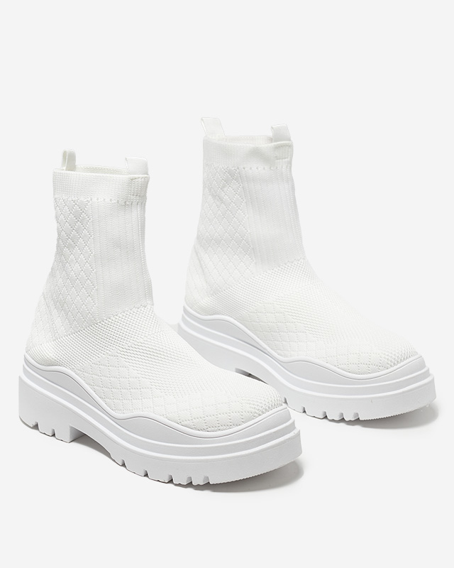 Royalfashion Białe botki damskie na płaskim obcasie Seritis