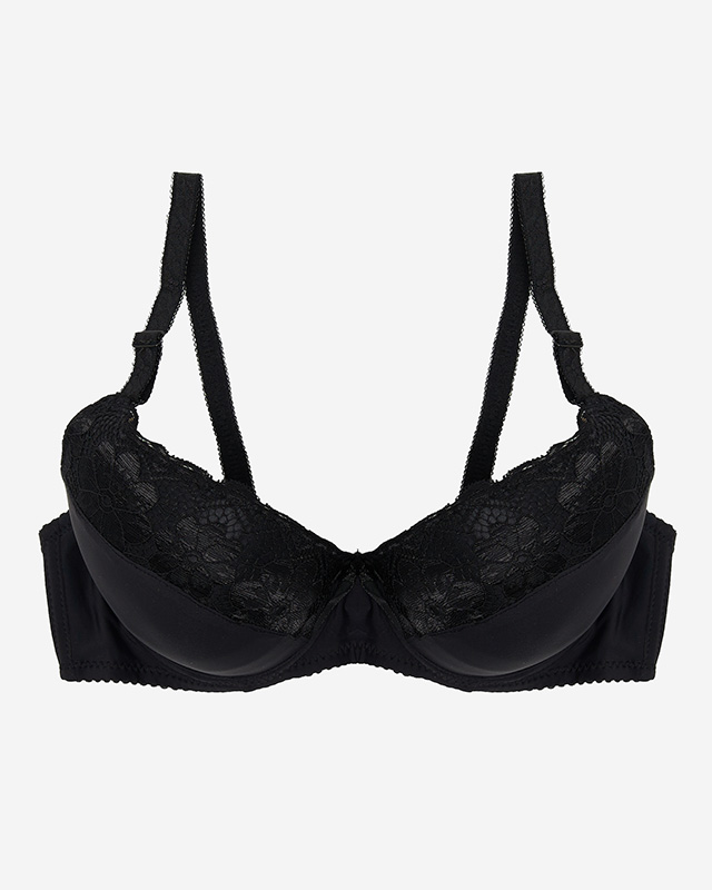 Royalfashion Czarny damski biustonosz z koronkową wstawką