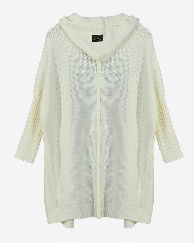 - Klasyczny damski długi sweter typu narzutka, wykonany z miękkiego materiału akrylowego. Kardigan bez zapięcia, posiada kaptur zdobiony naszywką. Super dodatek do Twoich casualowych outfitów! UWAGA: Dokładność pomiaru (+/-) 1 cm.