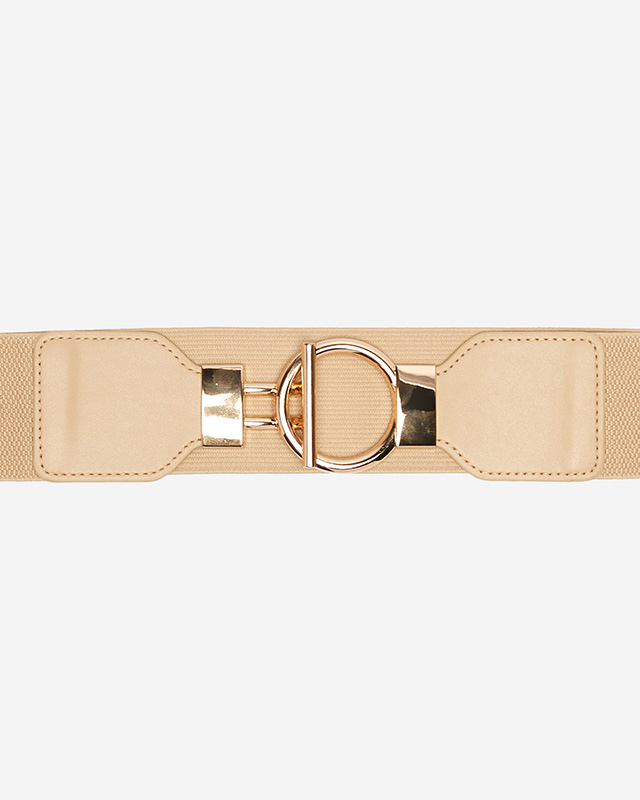 - Doskonały damski pasek z dużą, metalową klamrą w złotym kolorze na zaczep. Produkt wykonany z połączenia skóry ekologicznej oraz gumy. Super dodatek do Twoich casualowych outfitów!