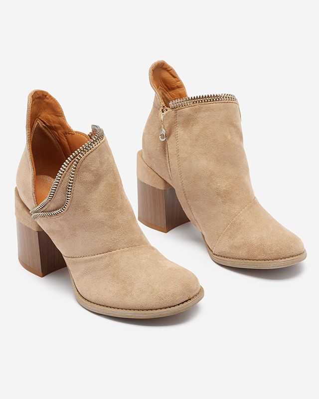 Royalfashion Jasnobrązowe damskie ocieplane botki na słupku Mukis