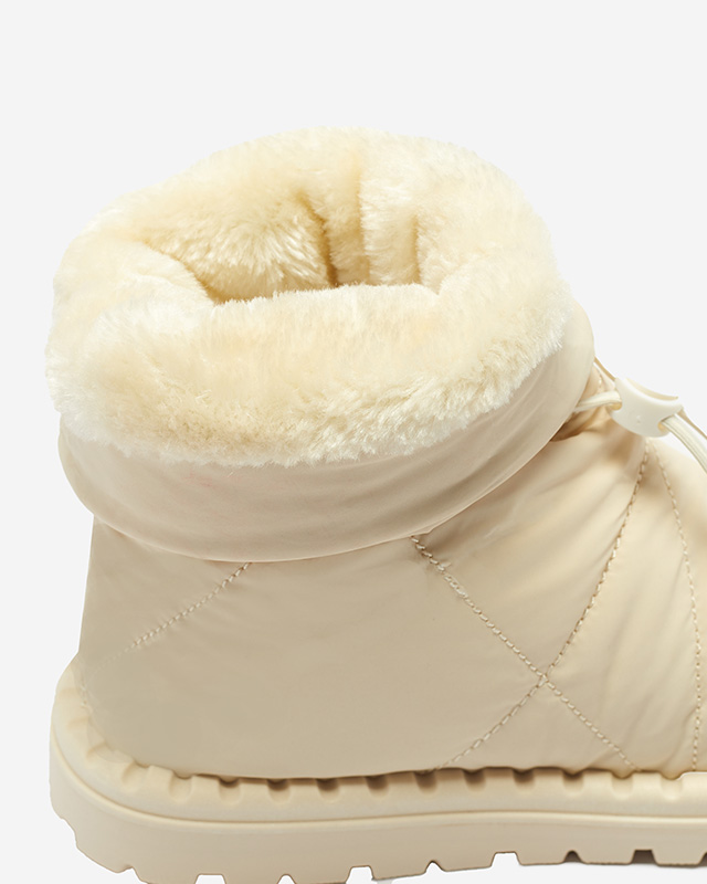 Royalfashion Damskie kremowe pikowane buty a'la śniegowce na płaskiej podeszwie Ferri