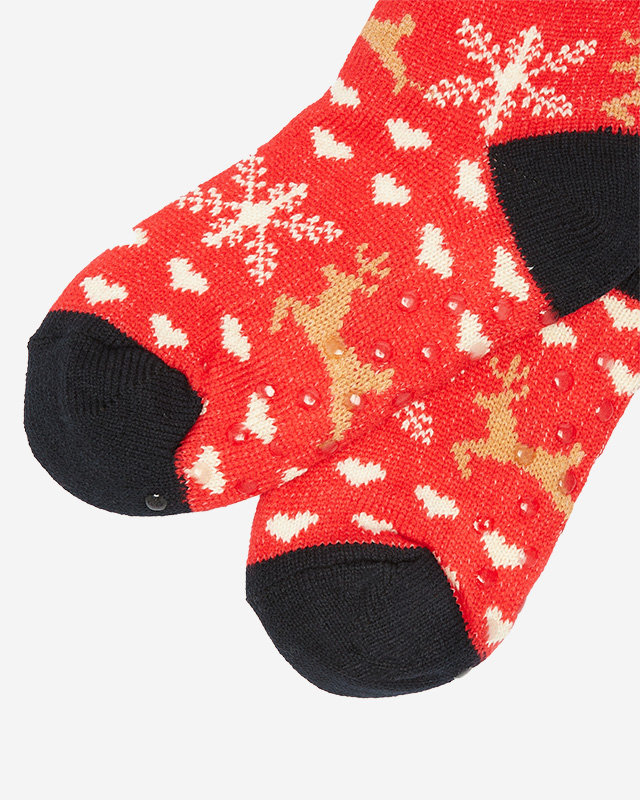Royalfashion Czerwone damskie skarpetki ze świątecznym wzorem