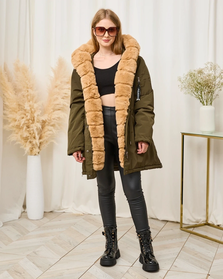 - Ciepła damska kurtka zimowa z kapturem i odpinanym, cieplutkim futerkiem. Kurtka zapinana suwakiem i guzikami, posiada 2 zapinane kieszonki po bokach oraz 2 na rękawie - ściągacz po środku. Świetna na zimową porę!