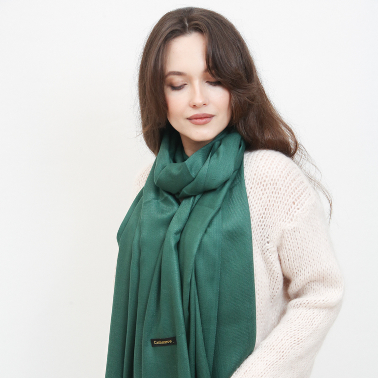Ciemnozielony damski duży szalik z frędzelkami - Akcesoria