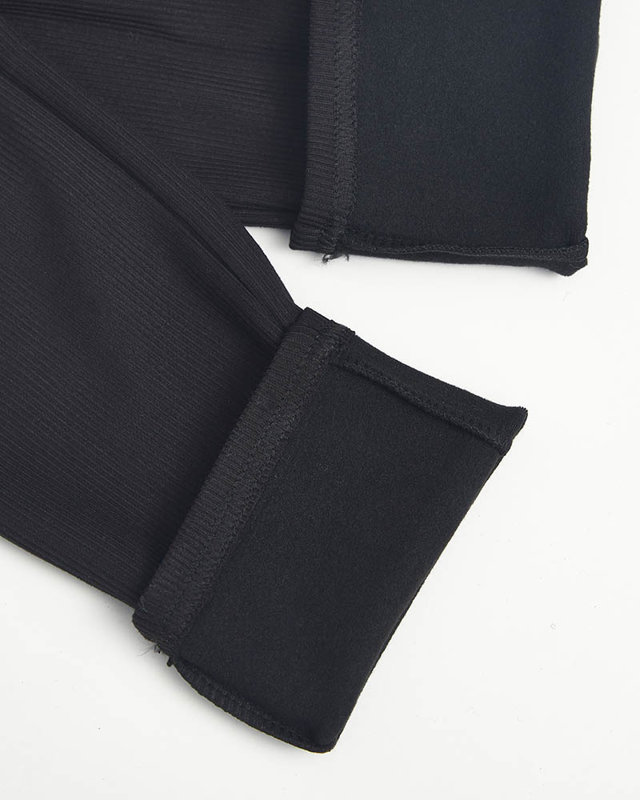 Royalfashion Ocieplane czarne damskie prążkowane legginsy