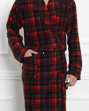 Royalfashion Czerwono - czarny męski szlafrok w kratę