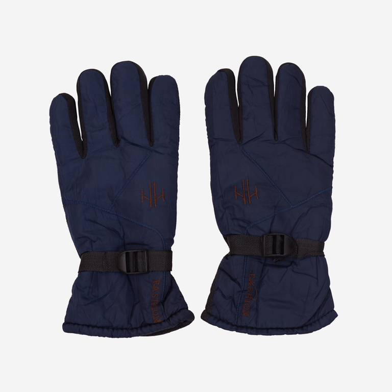 Royalfashion Granatowe ocieplane rękawice męskie z regulacją w nadgarstku
