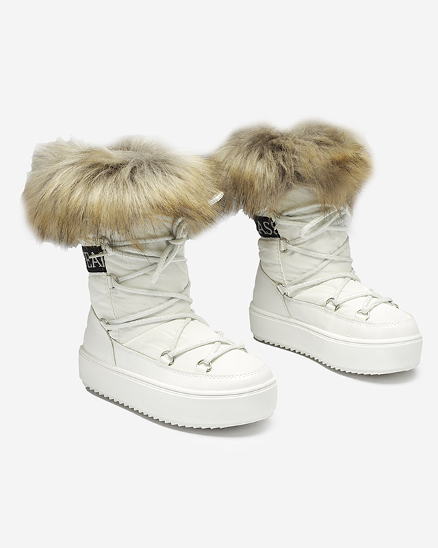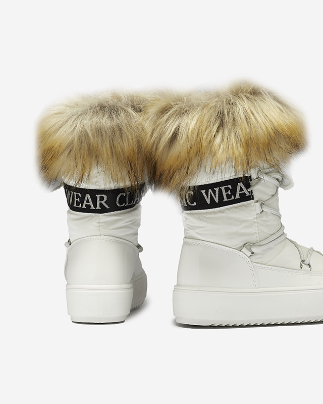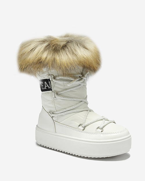 Royalfashion Białe dziecięce wsuwane buty a'la śniegowce z futerkiem Asika